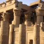 PICT0062Temple de Kom Ombo. Peut-être moins grandiose que les autres, il vaut pour son emplacement en surplomb du Nil et pour ses fresques colorées épargnées par le temps – eh oui car à l’instar des temples grecs, les temples égyptiens étaient bariolés à l’époque ! Difficile de s’imaginer ce que ça pouvait représenter, et pourtant de grandes traces bleues, rouges ou jaunes sont bien présentes.