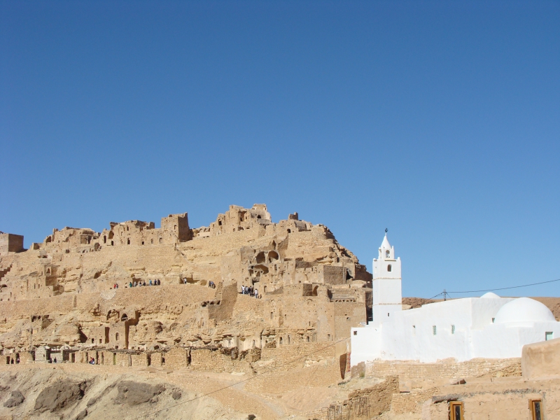 Tataouine. Le Quai d’Orsay classait cette région en vigilance orange en janvier 2014, en raison de sa proximité avec la frontière libyenne. Nous avons bien vu sur le bord de la route des trafics en tous genres (surtout de l’essence), mais pas de quoi se sentir en danger. Au contraire, nous avons eu une paix royale pour visiter les ksour du sud. Un ksar (singulier de ksour) est un ensemble de greniers et d’habitations fortifiés. Il peut prendre des tailles et formes différentes suivant le lieu et l’utilisation. Ainsi, même si tous les ksour se ressemblent à première vue, chacun a son histoire et son environnement qui en font un lieu unique. A noter que tous ces lieux sont en accès libre, du plus touristique au plus isolé, et pourtant absolument aucune dégradation (humaine) n’est à déplorer. Sur deux journées en voiture, on peut réaliser une belle boucle qui permet de voir les étapes suivantes :