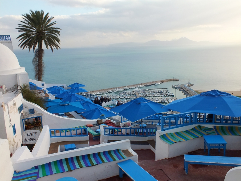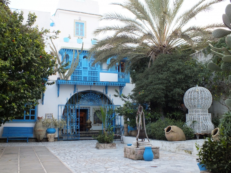 Sidi Bou Said. Extrêmement touristique, on a l’impression de connaître le village avec ses maisons bleues et blanches avant même d’y mettre les pieds. Mais si comme nous vous avez la chance de le découvrir hors saison et d’y passer la nuit, vous découvrirez un tout autre site. Sur les flancs du djebel Manar (oui, ça grimpe) s’accrochent quelques rues et ruelles qu’il est bon d’arpenter sous une lumière toujours changeante. Il y a peu d’hôtels à l’intérieur de la ville, les bâtisses bleues et blanches sont encore habitées par des familles. Levez la tête, sentez les odeurs de cuisine, essayez de deviner la vie derrière les moucharabieh ! A l’entrée de la rue principale, ne ratez pas le dar El Annabi belle demeure de style arabo-musulman du 18ème siècle. On peut visiter à sa guise cette maison familiale où ont été conservés les meubles et objets d’époque. Autre belle découverte, le centre des musiques modernes et méditerranéennes. Il jouit d’une superbe localisation sur une falaise en bord de mer. L’intérieur du début du 20ème siècle a été magnifiquement conservé. Le principal intérêt – comme son nom l’indique – est la collection des instruments de musiques locaux, souvent réalisés avec les moyens du bord, en l’occurrence avec des carcasses d’animaux.