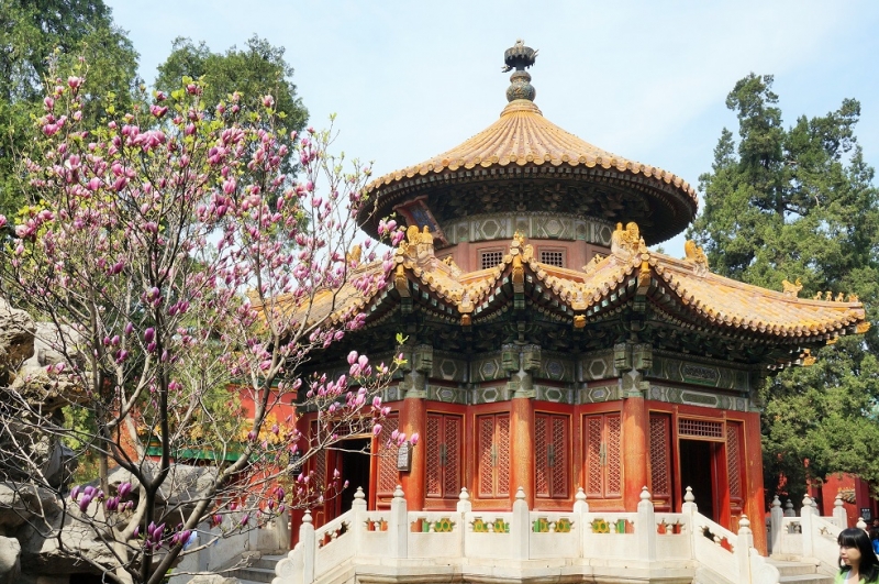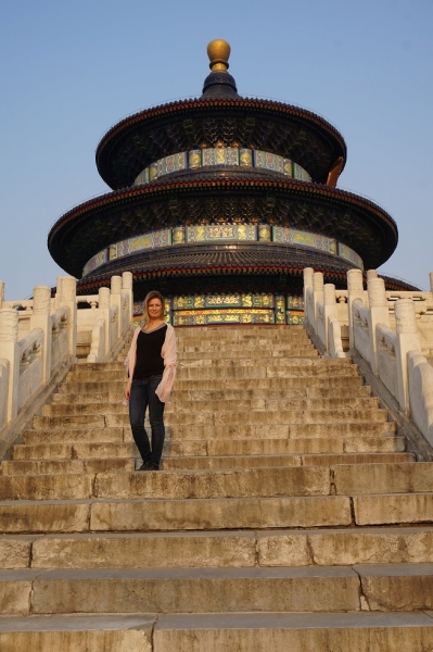 Le temple du ciel nous a coupé le souffle. Avant d’arriver à Pékin nous ne connaissions pas ce lieu qui est pourtant célèbre (désolé). Fondé dans la première moitié du XVe siècle, le temple du Ciel forme un ensemble majestueux de bâtiments dédiés au culte, situés dans des jardins et entourés de pinèdes historiques. Son agencement global, comme celui de chaque édifice, symbolise la relation entre le ciel et la terre – le monde humain et le monde divin. C’est ici que les empereurs des dynasties Ming et Qing, en tant qu’intermédiaires entre l’humanité et le royaume céleste, offraient des sacrifices au ciel et priaient pour l’obtention de moissons exceptionnelles. Dans la lumière de fin d’après-midi les couleurs sont sublimes et les formes, plus harmonieuses que jamais.