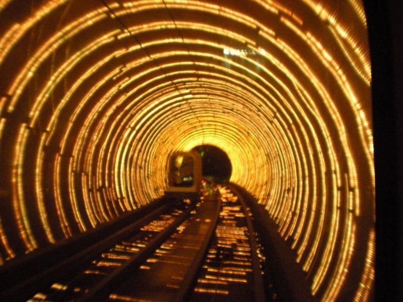 Pudong est le pendant du Bung, de l’autre côté de la rivière. Difficile de s’imaginer qu’il y a une trentaine d’années ce n’était encore que des terres agricoles ! Ce quartier d’affaires ne peut qu’impressionner, même s’il a eu pour nous un intérêt limité. En raison d’un temps peu clément et très brumeux, nous ne sommes pas montés en haut de la tour du centre des Finances (492 mètres) qui offre normalement un beau panorama sur toute la ville. Pour aller à Pudong et traverser la rivière, nous avons choisi le tunnel panoramique du Bund. Un peu cher mais très drôle, on est dans une sorte de petite capsule qui avance dans des décors psychédéliques. Du grand d’importe quoi !