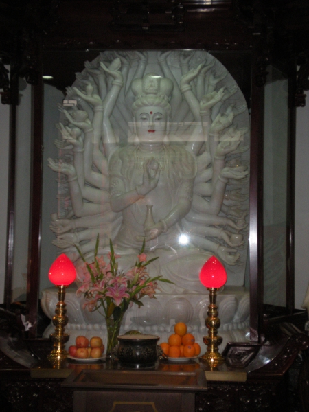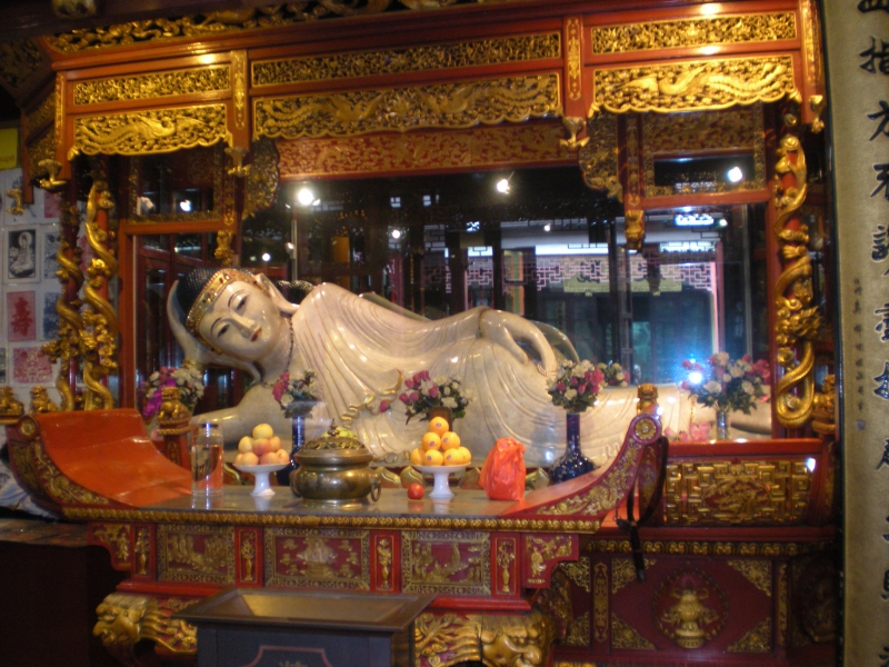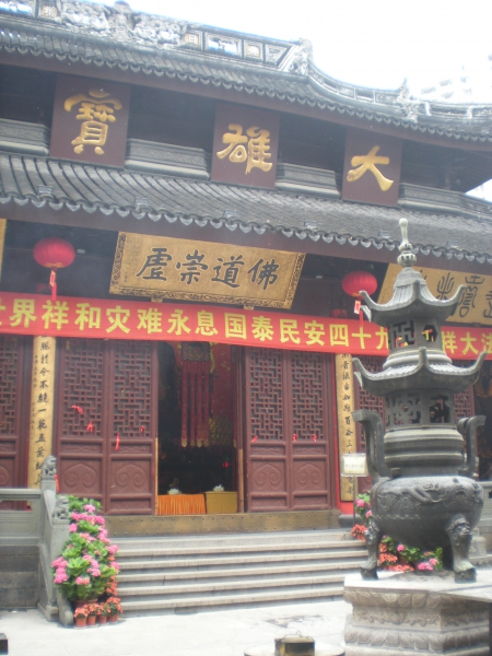 Nous ne sommes passés que rapidement dans l’ancienne concession française mais le quartier avait l’air très calme et vert, avec de beaux bâtiments et des boulangeries ! Au nord de celui-ci, nous sommes allées au temple du bouddha de Jade, plus célèbre édifice religieux de la ville. On peut y voir deux statues en jade blanc qui viennent de Birmanie.