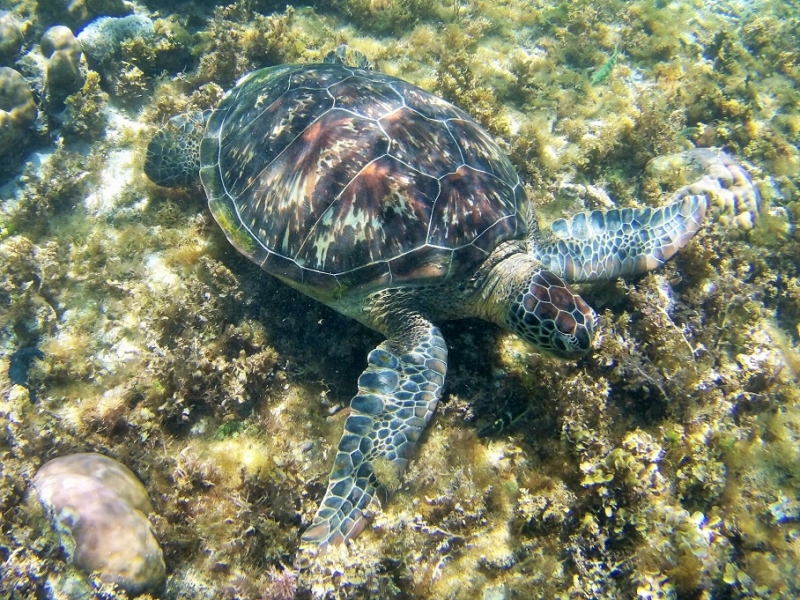 – Apo Island est accessible depuis Negros et Siquijor. Cette île est un confetti de seulement 12 hectares. C’est un spot de snorkeling très réputé, notamment pour voir les tortues, protégées par la réserve marine. Nous y avons passé une journée, qui nous a permis de revivre cette expérience exceptionnelle que nous avions connue aux Galápagos. L’eau cette fois est bien plus chaude, d’une clarté irréprochable et les tortues ont la carapace… rouge ! On ne s’en lassera jamais !