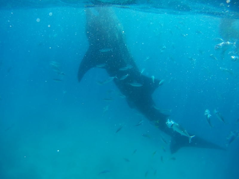 – Cebu est pour beaucoup, comme pour nous, la porte d’entrée des Visayas. C’est là que fut tué Magellan en 1521, mettant fin à son tour du monde. Nous ne sommes restés qu’une nuit à Cebu City, la capitale tentaculaire de 800’000 habitants. Puis plus tard dans le Sud depuis Negros pour nager avec les requins-baleines à Oslob. Depuis quelques années, les pêcheurs du coin nourrissent les bestioles qui peuvent mesurer jusqu’à 15 mètres de long (procédé discutable, on le reconnaît). En partant sur une barque avec l’un d’eux, on peut nager 30 minutes à côté de ces poissons énormes ! C’est effectivement très impressionnant, d’autant plus qu’ils avancent avec leur énorme bouche ouverte, gobant tout ce qui passe. La présence de l’Homme (de nous quoi…) ne les trouble pas – la remarque-t-il seulement ? Bref, une expérience hors du commun !
