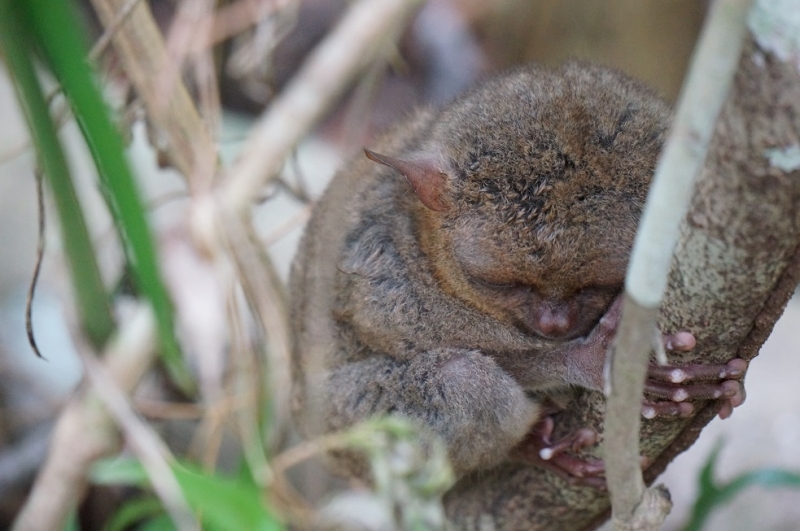 – Bohol est l’un des fleurons touristiques de la zone. Elle est connue pour deux attractions principales, que nous avons vu en une journée de scooter. Tout d’abord les tarsiers, les plus petits primates au monde. Il est possible d’en voir dans le parc de Corella. Il faut se faire discret pour ne pas les déranger (ils sont nocturnes) admirer ces petites peluches aux yeux énoooooormes !