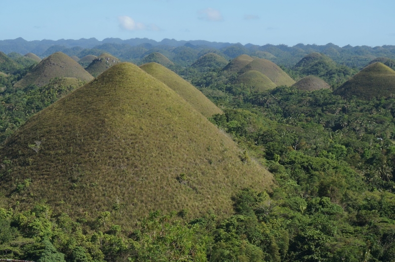 En s’enfonçant au centre de l’île, on ne peut que remarquer les Chocolate Hills, ces presque 1000 collines dont on ne connaît pas vraiment l’origine. A notre grande déception, elles ne sont pas en chocolat mais doivent leur nom à leur couleur marron due à la terre sèche. L’île abrite aussi la rivière Loboc de couleur émeraude, de belles rizières, des hameaux isolés, et des sourires par dizaines. Un régal !