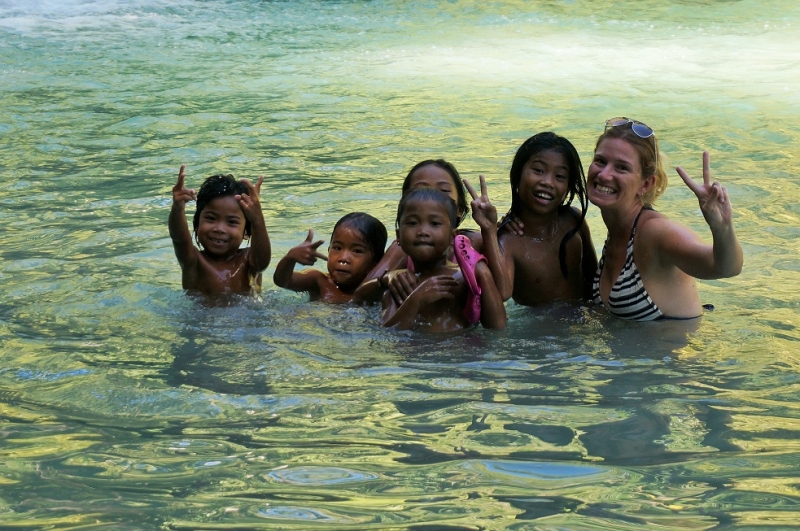 – Siquijor fut la surprise de notre parcours. Sur les conseils d’autres voyageurs trouvés sur Internet, nous avons passé 3 jours sur cette île des plus attachantes. Nous avons choisi un hôtel les pieds dans l’eau, sur la magnifique plage de Solangong, près de San Juan. De là il était aisé de rayonner en une journée de scooter, comme nous l’avions fait à Bohol. Une nouvelle fois, les « attractions » valent autant que la route elle-même, les rencontres et les sourires partagés. Sans faire beaucoup de kilomètres il est possible de vivre une journée variée : une super plage de pêcheurs déserte (Paliton), un fish Spa avec des poissons énormes (Balete Tree), des églises et hameaux, une cascade aux enfants joueurs (Cambughay Falls). Encore à l’écart des grands circuits touristiques, cette île est un ravissement que nous ne pouvons que conseiller !