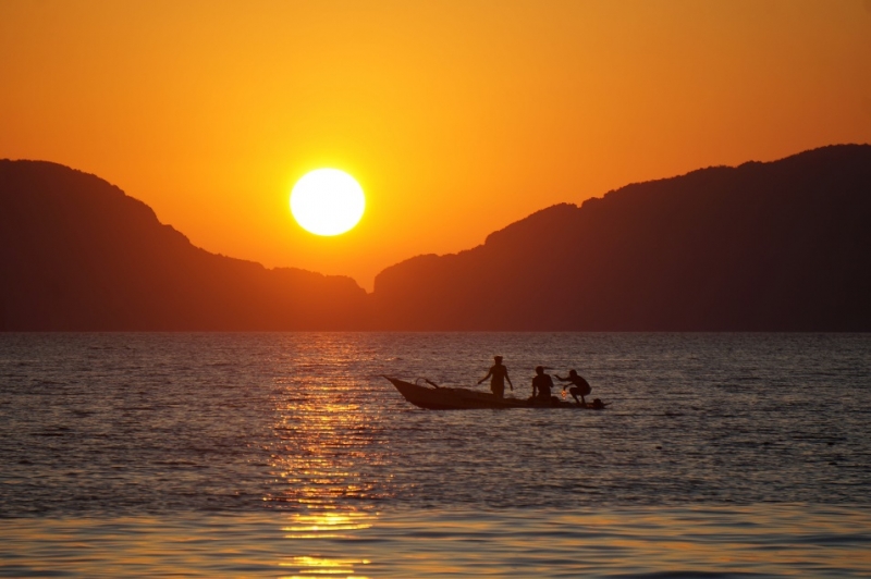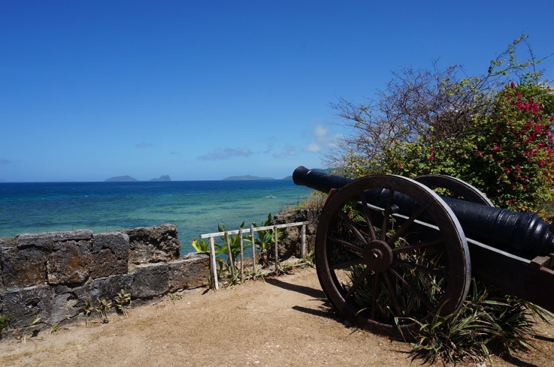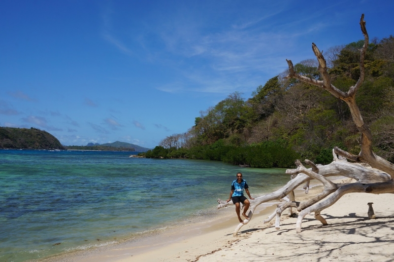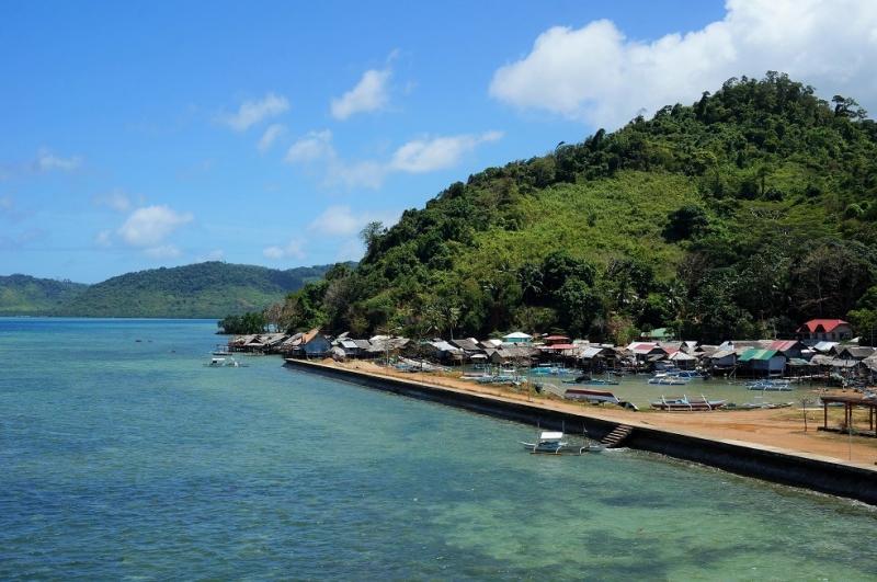 Taytay, pourquoi Taytay ? Avant tout car nous avions du temps et ne voulions pas nous précipiter à El Nido. D’après le Lonely Planet, c’est une étape sans intérêt. Nous nous sommes pas du tout d’accord, au contraire, nous conseillons de découvrir cette petite ville avant que son secret soit révélé. Depuis l’unique hôtel de la ville s’offrent de beaux panoramas sur la mer et son fort Fuerza de Santa Isabella. Fort à visiter d’ailleurs, construit par les Espagnols au 17ème siècle, Taytay ayant en effet été la première capitale de l’île. Une autre visite sympa, le lac Danao, plus grand lac d’eau douce de Palawan. Il est connu pour abriter des dizaines d’espèces d’oiseaux. Bien sûr pour bien les voir il faut mieux venir à 5h du matin… Nous avons également découvert les alentours de Taytay, par l’intermédiaire de notre hôtel, lors d’une journée en bangka, cette barque en bois typique de l’archipel, aux faux airs d’araignée. Nous n’étions que nous 2 plus 3 membres d’équipage sur un beau et grand bateau. Premier arrêt à Elephant Island pour un snorkeling intéressant, puis le clou de la journée : repos sur l’île privée de Dinamayan, habitée seulement par le gardien Zaldy et sa famille. Celui-ci nous a chouchoutés, nous a laissé profiter de sa magnifique plage, nous a préparé à déjeuner, nous a cherché des noix de coco… Un moment inoubliable dans un petit paradis qu’il fut très difficile de quitter.